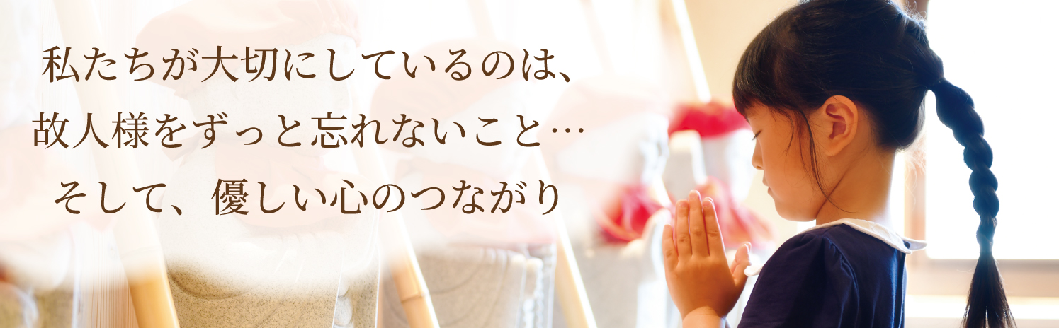 お葬儀が終わってから本当のおつきあいが始まります。 仏壇や仏具、位牌、手元供養、念珠、お線香など、ご供養に関する品々を幅広く取り揃えております。